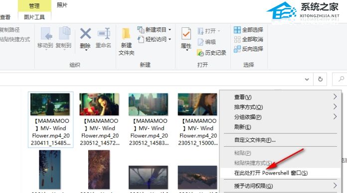 1. 打开电脑之后在电脑中打开一个文件夹,在文件夹页面中先按住“shift”键,再右键单击文件夹页面,在菜单列表中点击“在此处打开Powershell窗口(S)”选项。