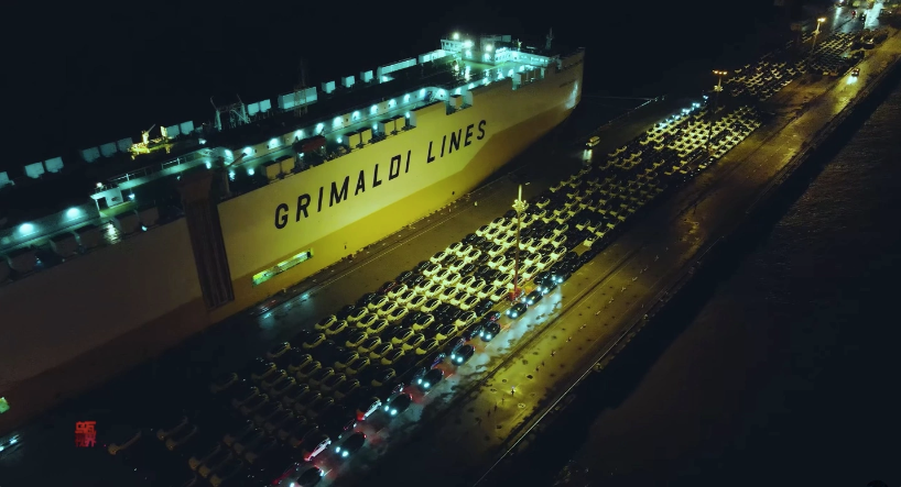 而在次日的航拍中,又出现了一艘新的滚装船,新出现的那一艘特别大,码头上所停放的特斯拉电动汽车,也在源源不断的驶进这一艘滚装船。