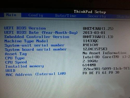 2、进入BIOS。此处以Thinkpad E520为例,开机过程在屏幕刚显示Thinkpad品牌Logo时,按F1(可多次按键,但不是一直按着不松),然后就能进入BIOS;