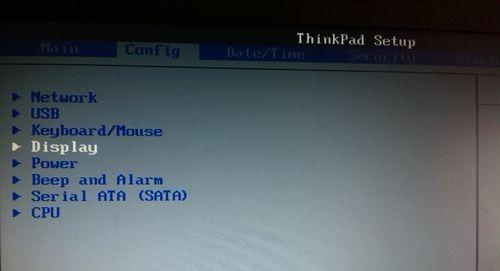 3、按方向键“→”选中“Config”,然后按“↓”键选中“Display”;