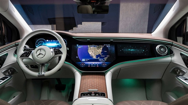 内饰则同样是奔驰家族化风格,与EQS相似的内饰设计理念,科技又豪华,不过需要注意的是,虽然该车也提供EQS SUV相同的MBUX Hyperscreen大屏,但绝大多数消费者购买的车型仅配备了液晶仪表盘和中控屏幕两块屏,当然同样具有极强的科技感。