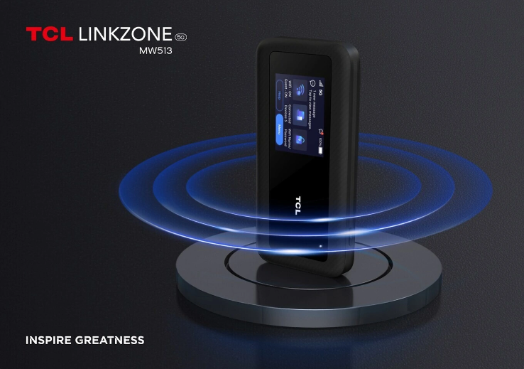 TCL linkZONE 5G MW513 移动 Wi-Fi 支持 5G sub-6Ghz 和 mmWave 以及高达 4.11 Gbps 下行速度的双频 Wi-Fi 6E,最多可连接 32 个连接,拥有 12 小时的电池续航时间。