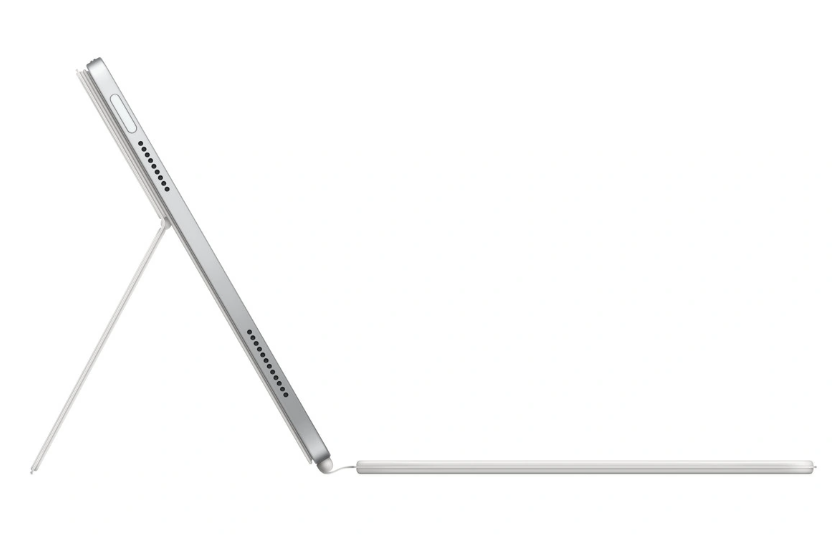 苹果表示,新款妙控键盘双面夹专为新款 iPad 设计,采用全尺寸按键,1 毫米键程,响应灵敏,带来出色的输入体验。这是第一次,为 iPad 带来了配备宽大触控板的专属键盘,支持随处点击和多点触控手势。