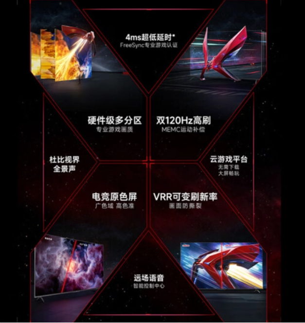 配置方面,小米 Redmi 游戏电视 X Pro 搭载四核 A73 芯片,配备 3GB + 32GB 存储,还有 AMD FreeSync Premium 专业游戏认证。