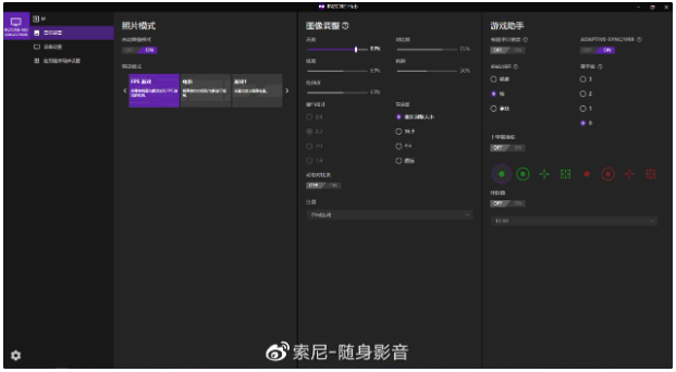 除了具备一枚遥感式交互物理按钮以外,它还拥有 INZONE 显示器特有的 INZONE Hub 软件。玩家只需点击鼠标就可以轻松快捷地调节最适合自己的游戏模式和功能。