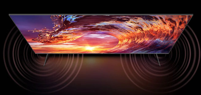 该电视还配备两个 10W 扬声器,采用金属机身,内置小爱同学远场语音控制,搭载四核 A55 处理器,拥有 2GB + 16GB 存储。