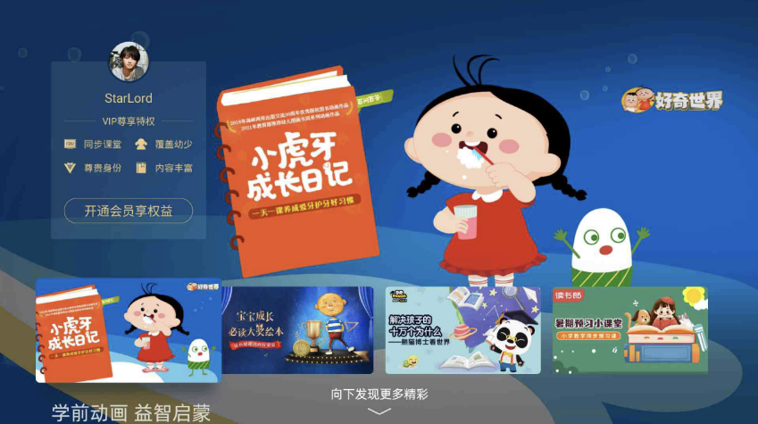 一种全新的教育形式,使用投影仪即可让各年龄段的儿童接受到全科教育。科目丰富,基本涵盖所有版本的教科书内容,且针对学龄前儿童更有专项栏目,帮助基础世界观以及对真善美价值观的构建。更重要的是,孩子不再需要对着电视机或显示器,以减少高频有害蓝光对儿童眼部的刺激。