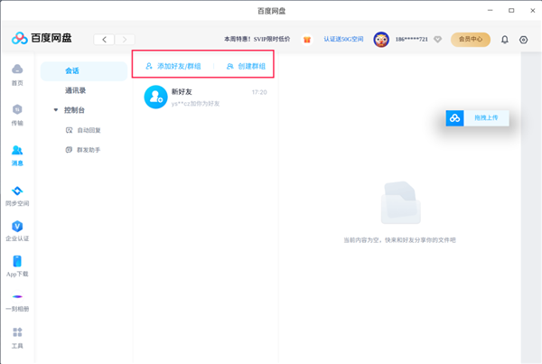 好友:在“消息-会话”中,用户可自由添加好友/群组以及创建群组聊天;