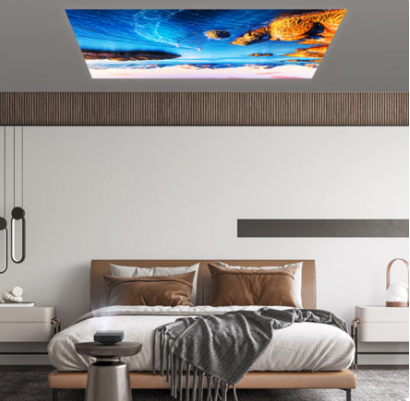 如下图所示,安装上这款镜面支架之后,峰米 S5 可实现挂墙投、躺平投、正面朝下投等多种投影方式。
