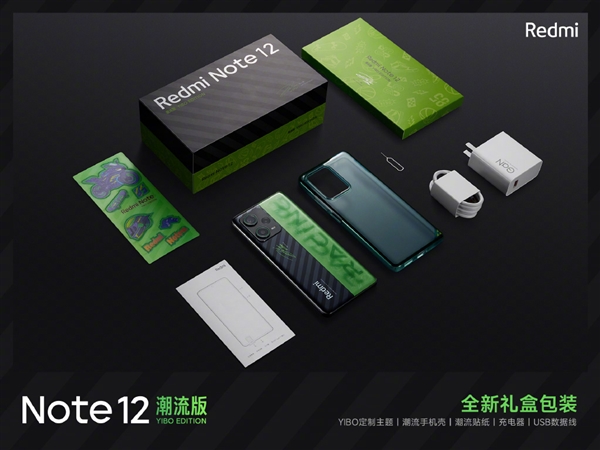 值得注意的是,Redmi Note 12潮流版的包装也进行了深度定制,包装盒采用定制赛道元素,内含悬浮贴纸。