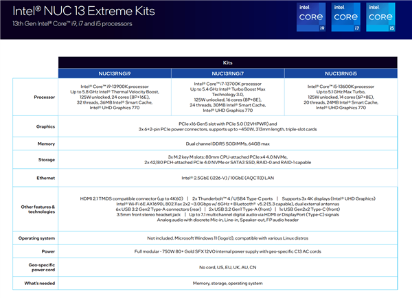 今天,Intel发布了全新的Raptor Canyon NUC 13 Extreme迷你机套件、计算元件,是迄今为止最强大的NUC,搭载13代酷睿K系列处理器,可安装三插槽体积的独立显卡。