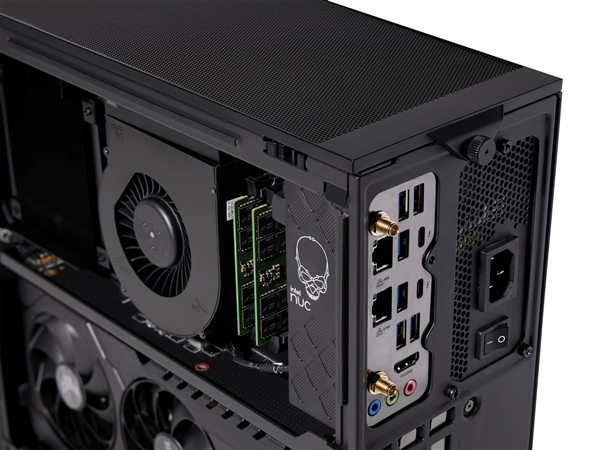 NUC 13 Extreme体积达337 x 318×129毫米,也就是多达13.8升,并重新设计了机箱内部架构,优化了散热气流,保证紧凑外形和占用空间的同时,可让高端配置性能尽情释放,并降低噪音。