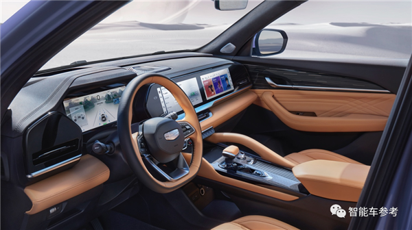 内饰方面,前排共有3块屏幕,分别是液晶仪表盘、中控屏、副驾屏,大小都是12.3英寸。