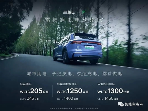 WLTC工况下,新车纯电续航205km、增程续航1250km、混动续航1300km。