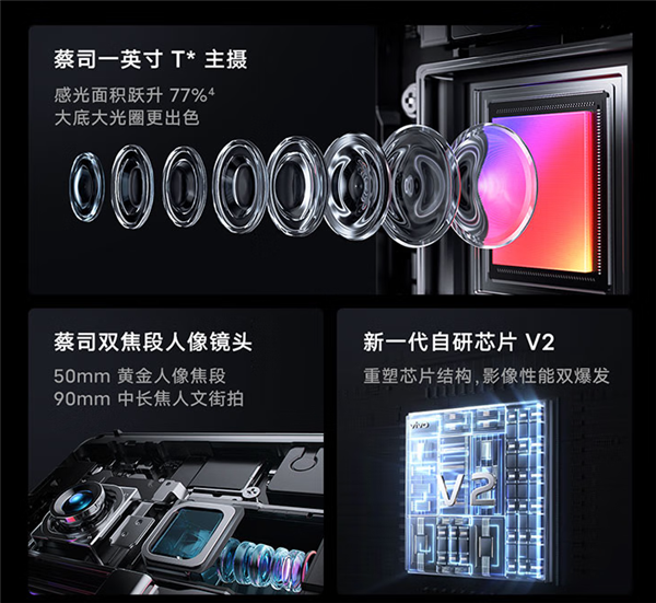 vivo对1英寸大底的打磨也下了功夫,行业唯一f/1.75大光圈,镜头搭载81.6高阿贝数的单反级玻璃镜片,同时配备蔡司T*镀膜,可更好的消除眩光和鬼影。