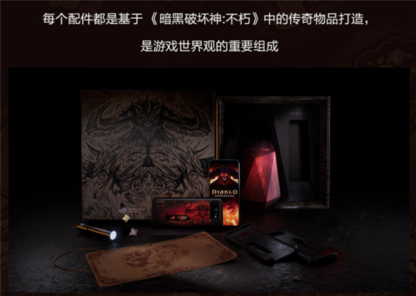 套装内除了手机之外,还包含祝福之盾(手机壳)、不朽典藏卡针、世界之石(手机盒)、庇护之地世界图、法希尔之光(手电筒)等定制周边。