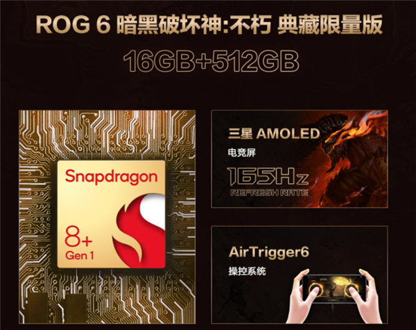 今天,ROG 6游戏手机《暗黑破坏神:不朽》典藏限量版也于10点正式开售,售价6999元。