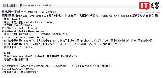 下面是 PENTAX K-3 MarkIII 固件升级说明:
