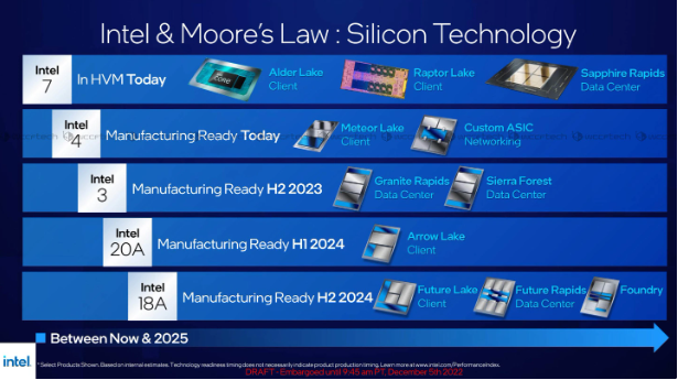 值得注意的是,公司提到节点“准备生产”的流程与他们预计流程处于风险生产状态的时间线相对应。这意味着 Intel 4 现在处于风险试产状态。