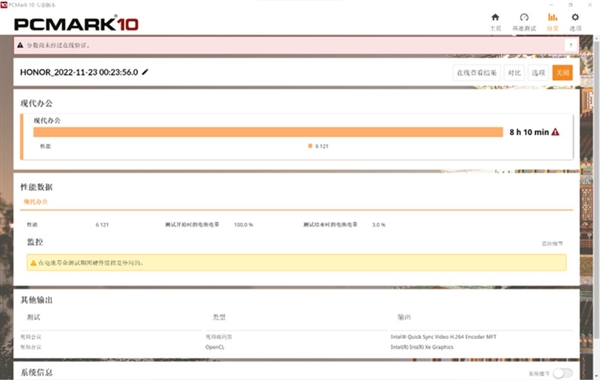 而具体到荣耀MagicBook V14这款机型,得益于OS Turbo的优化调教,在50%屏幕亮度下,使用PCMark 10进行续航测试,从结果来看能坚持8小时10分钟,也达到了可以接受的水准,基本可以满足移动办公的需求。