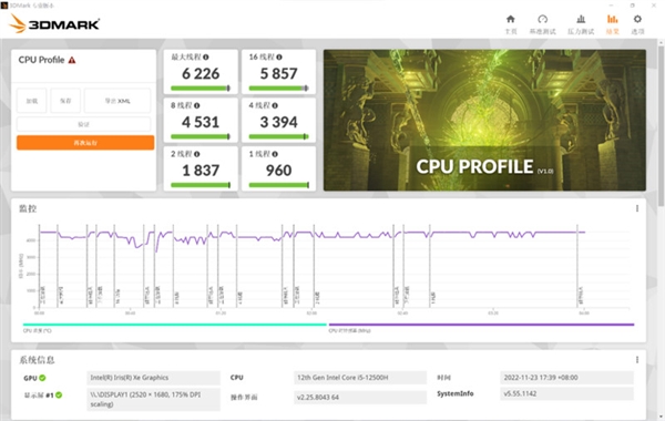 3DMark独立的CPU Profile项目,用于测试处理器不同线程下的性能,以更好的对应不同类型的游戏负载。