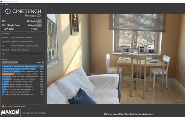 Cinebench系列是更加常见的基准测试软件,基于Cinema 4D开发用于测试处理器渲染能力,目前已经跟随Cinema 4D一起更新至R23版本。