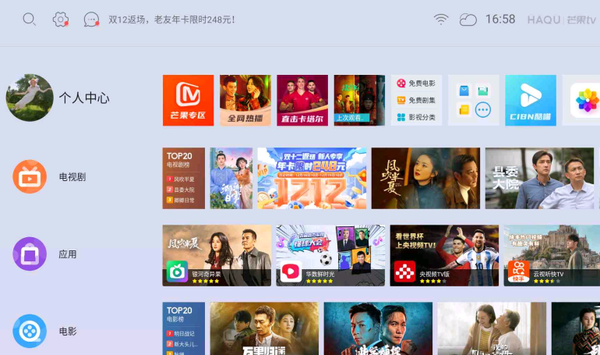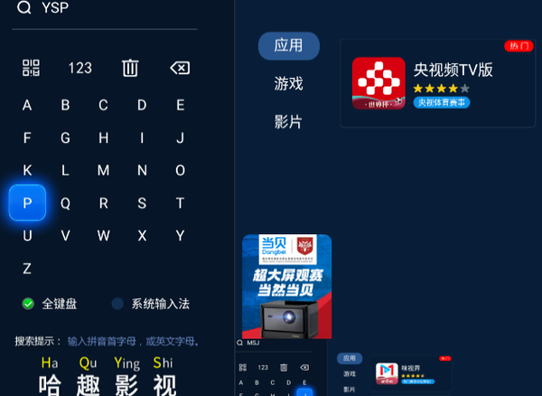 (2)自带应用商店搜索软件,央视频TV版和咪视界进行大屏看。