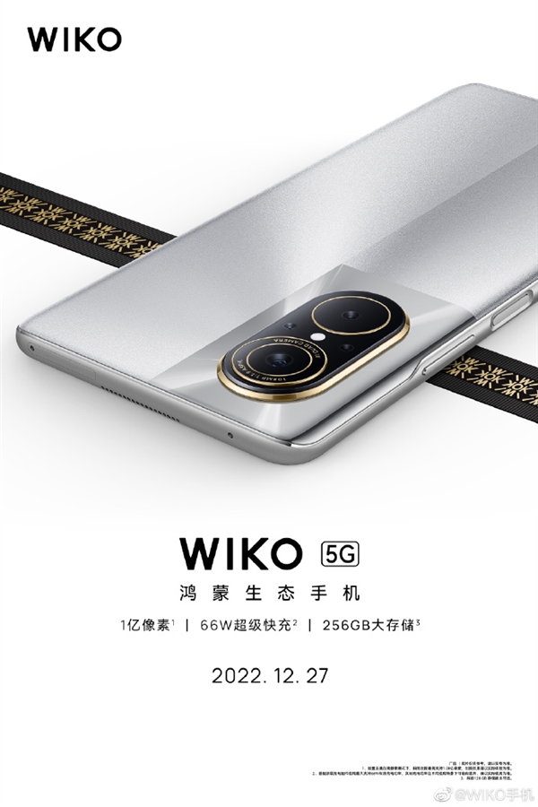 日前,法国科技品牌WIKO在微博首次亮相,国内官网同步上线,根据预热,12月27日,WIKO将发布其在国内的首款新机,不仅支持5G,还是一款支持鸿蒙生态的手机,拥有1亿像素主摄、66W超级快充等很眼熟的配置。
