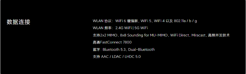 FastConnect 7800 同时还支持一系列蓝牙音频先进特性,通过新一代的智能双蓝牙技术,即拥有优化连接的两个射频,FastConnect 7800 连接系统为 Snapdragon Sound 骁龙畅听技术、蓝牙 LE Audio(蓝牙低功耗音频)和蓝牙 5.3 带来支持,让蓝牙配件的信号接收范围翻倍,蓝牙功耗与前代相比降低高达 50%。