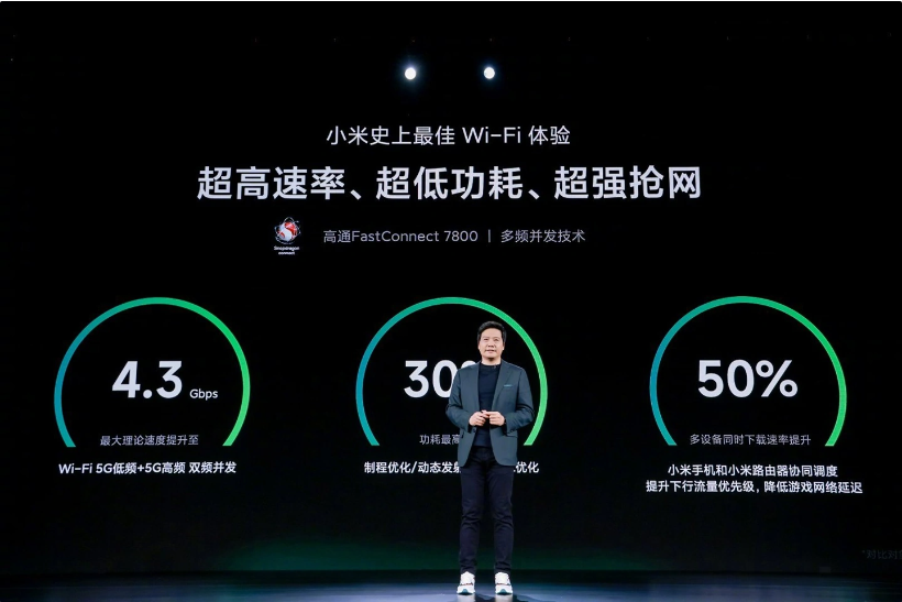 IT之家了解到,小米 13 Pro 支持 FastConnect 7800 连接系统,这是全球首款支持 Wi-Fi 7 的无线子系统,高频多连接并发技术可实现全球 Wi-Fi 7 峰值速度,速率高达 5.8Gbps,并且可实现低于 2ms 的超低时延性能表现,在流媒体、游戏等诸多场景下可带来畅快的连接。同时,与前代相比 FastConnect 7800 的能效提升了 30%-50%,可带来更长电池续航,支持更广泛的应用。
