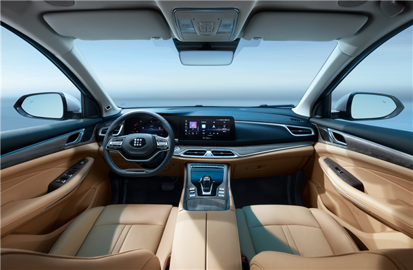 新车座舱呈环抱状,配备了一体式联屏、全新造型的双辐式多功能方向盘,同时多使用软质材料包裹,烘托了一定的豪华温馨感。