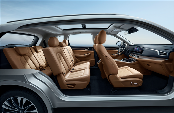 作为一辆新混动SUV,蓝电E5采用的灵动5+2座布局也是的一大特色,可轻松容纳全家舒适出行,通过合理的空间布局优化,蓝电E5的车内空间转化率达90.63%,前排900mm、中排881mm的超阔头部空间让用户视野更开阔。