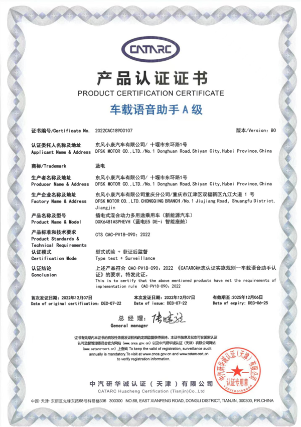 值得注意的是,蓝电E5在中汽中心的智能座舱认证中,顺利通过了车辆车载语音交互系统的功能性、快捷性、便利性、智能性四大维度共18个子项目的全方位测试,并获得了车载语音助手A级证书,成为继问界M5之后第二款获得此项认证的车型。