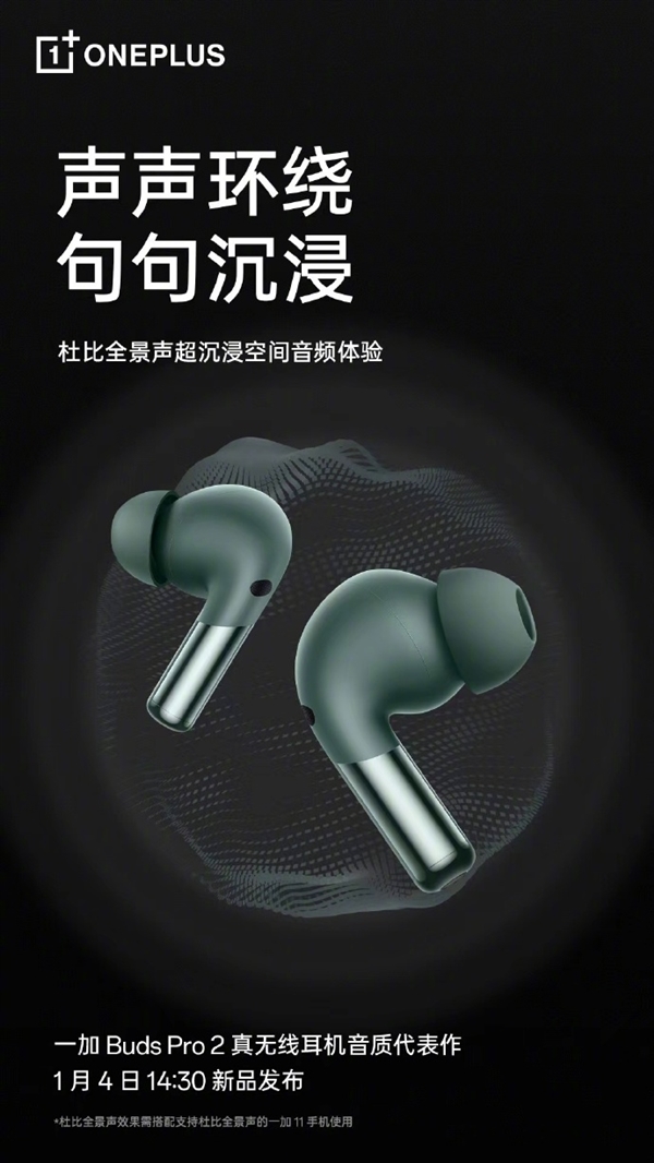【本站】12月30日消息,一加官方今日宣布,一加Buds Pro 2将与一加11系列同步于下周三正式发布。两者搭配使用将为使用者带来可能是有史以来体验最好的空间音频。