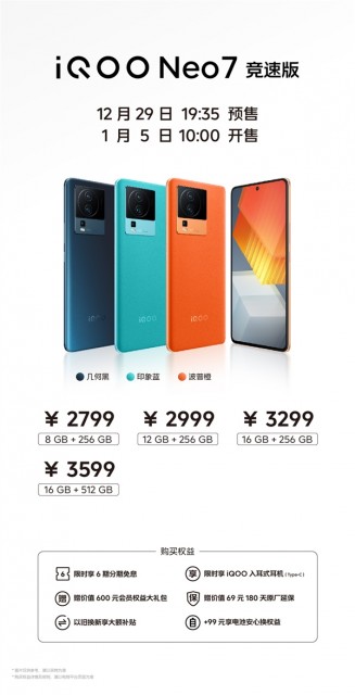 据悉,全新的iQOO Neo7竞速版将于1月5日(本周四)正式开售,包含8GB+256GB、12GB+256GB、16GB+256GB和16GB+512GB四个存储组合版本,售价分别是2799元、2999元、3299元和3599元,感兴趣的朋友届时可以关注一下。