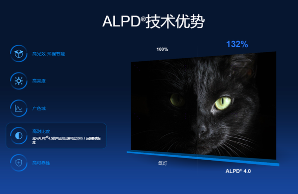 · 优点:实验数据显示,在相同亮度下,采用ALPD激光显示技术的激光投影仪,在体积上比其他光源投影仪小30%~50%;而在相同体积下,激光投影仪的亮度则是其他光源亮度的2~5倍。并且没有散斑的问题。