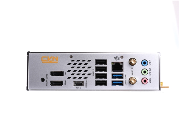 后置1个USB 3.2 Gen 1 Type-C接口、2个USB 3.2 Gen1 Type-A接口、4个USB 2.0接口,主板同时提供1个HDMI、1个DP显示接口,1个2.5Gbps网线接口和3.5mm的耳机、麦克风接口。