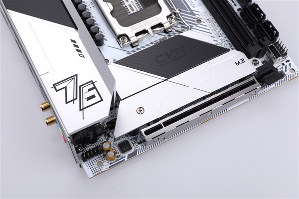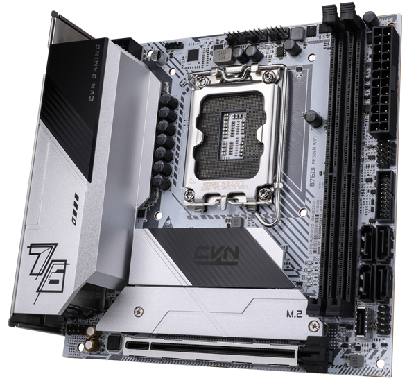 七彩虹CVN B760I FROZEN WIFI登陆舰主板采用大面积金属散热护甲,全覆盖式冷凝帖配合高导热硅胶片,大幅提升主板对供电、存储、芯片组等高发热区域的散热效果。