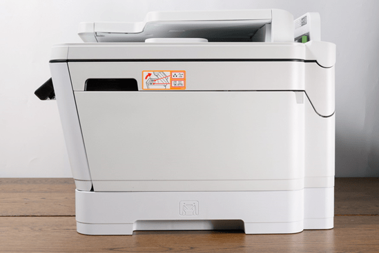 不过需要特别注意的是,如下图所示,拉长后的纸盒放进机器后是会突出一截的,因此建议用户在使用A3纸时,把出纸托板打开,它刚好能遮挡突出纸盒,避免纸张遭受意外损伤。