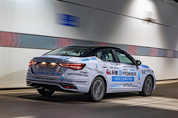 不同于一般的谍照,该车身上则使用了文字进行装饰,主题为“轩逸e-POWER,来自车主的真实声音”,可以看到诸如“太平顺了、太丝滑了”、“一箱油用一个月”、“秒天秒地秒空气”等标语。