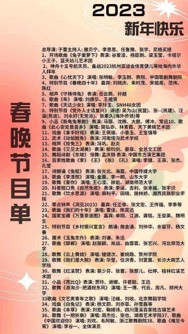 下面是兔年春晚的节目单!!