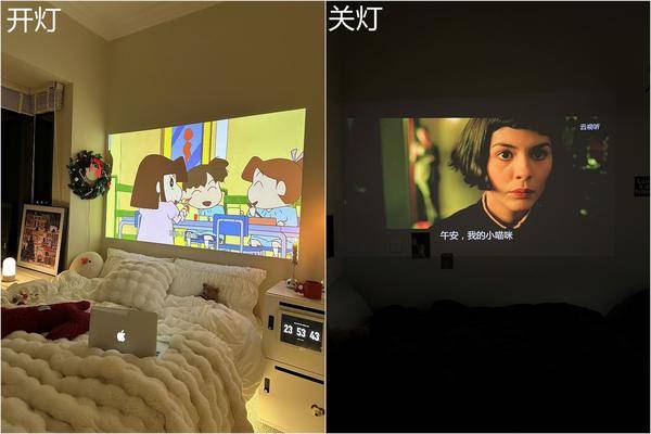 当贝D5X的亮度为1100ANSI,如果不习惯在纯黑的环境下使用的话,也可以开着卧室的照明灯使用,画质依然能够呈现出清晰的效果,由于内置了自研的AI臻彩引擎Pro技术,针对不同的画面可进行实时重塑,主要的作用是优化图像的清晰度和色彩明暗对比,使得明暗细节更具层次感。