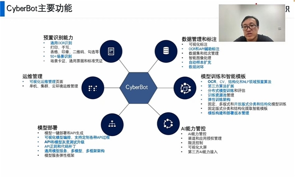 北京易道博识科技有限公司CTO康铁钢介绍易道博识赛博智能学习平台。该平台定位于一站式机器学习训练平台,集合数据管理、模型训练、智能模板和服务应用等功能于一身,提供CV、OCR、NLP等领域数据驱动模型应用的现场高效解决方案。