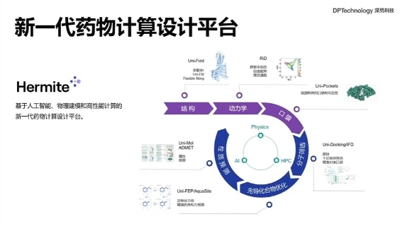 北京深势科技有限公司药物设计解决方案总监马鹏宇介绍基于AI for Science新范式的新一代药物计算设计平台Hermite®。该平台独创的深度势能算法,可在保持量子力学精度的基础上,将分子动力学的计算速度提升了至少五个数量级。