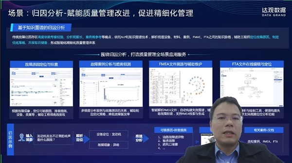 达而观信息科技(上海)有限公司副总裁王文广介绍达观智能知识图谱系统。该系统采用先进的深度语义理解技术,首次实现知识图谱全流程的构建、应用和管理,实现一体化的图谱模式设计,全面的辅助客户进行图谱的管理、权限控制、任务调度。