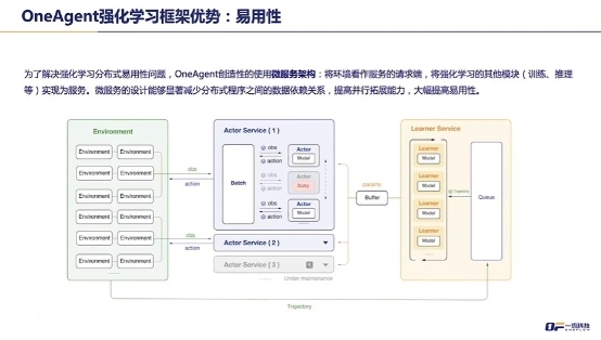北京一流科技有限公司强化学习系统架构师卢琛达介绍OneAgent强化学习框架。该算法是一种新的分布式强化学习框架,适配了大部分的常见强化学习算法,同时在智能决策等领域取得了实际应用,显著提高了训练效率。