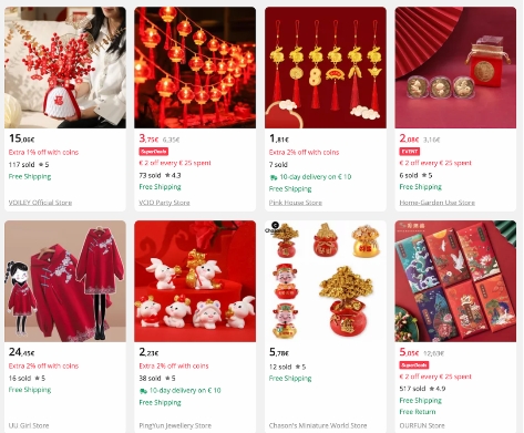 根据速卖通数据显示,春节前夕,有超过200个国家和地区的用户,搜索了“Chinese New Year”,”Rabbit Year”, ”Spring Festival”等关键词的春节类相关产品;包含“rabbit”等兔年元素关键词的搜索量,12月环比增长了141%;关于“春节”相关关键词的搜索量,在去年虎年强势爆发的基础上仍呈2位数增长。红包、灯笼、春联、新春装饰等春节年货12月销售额同比增长560%,且在持续增长中,中国春节在海外的影响力不断增强。
