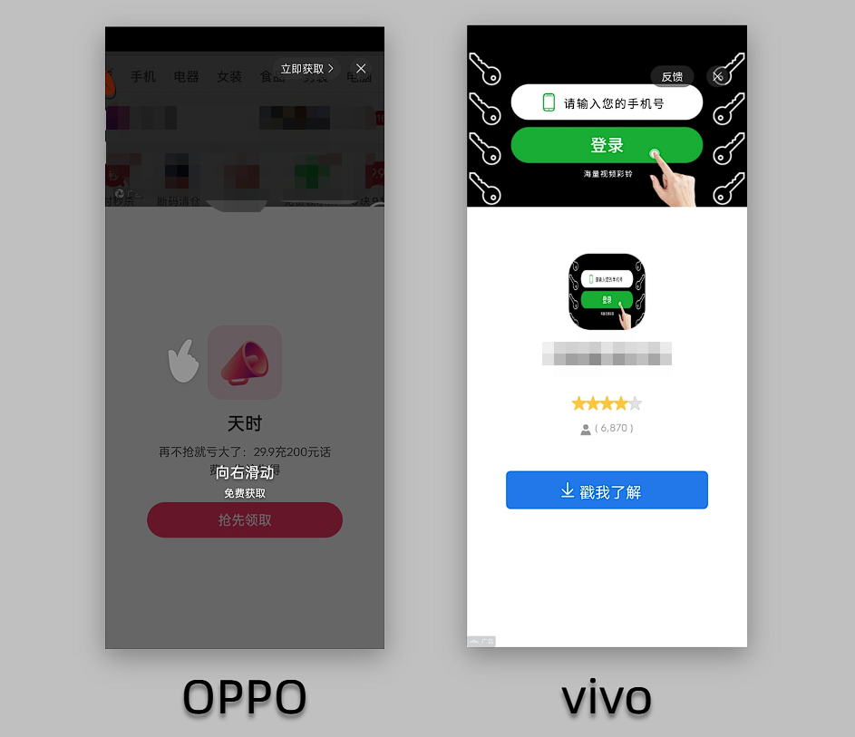 其中,OPPO和vivo情况较为糟糕,手机刚刚解锁时,偶尔会有莫名其妙的广告弹窗霸屏。