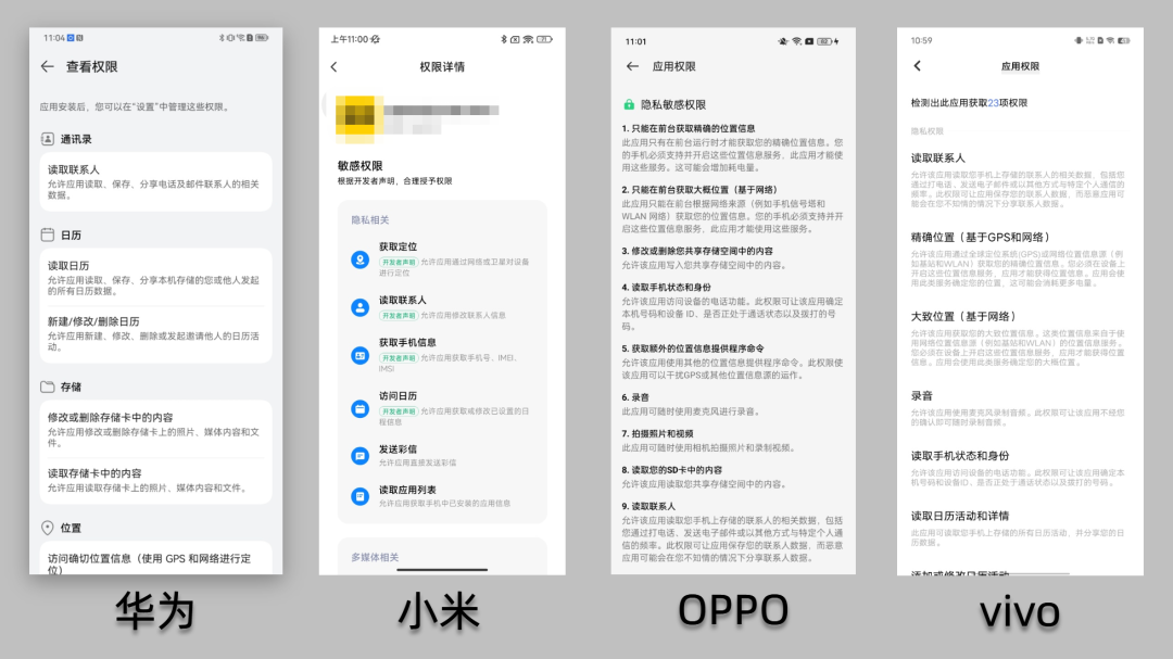 针对不给权限不能用的问题,华为、小米、OPPO、vivo都能“用魔法打败魔法”。