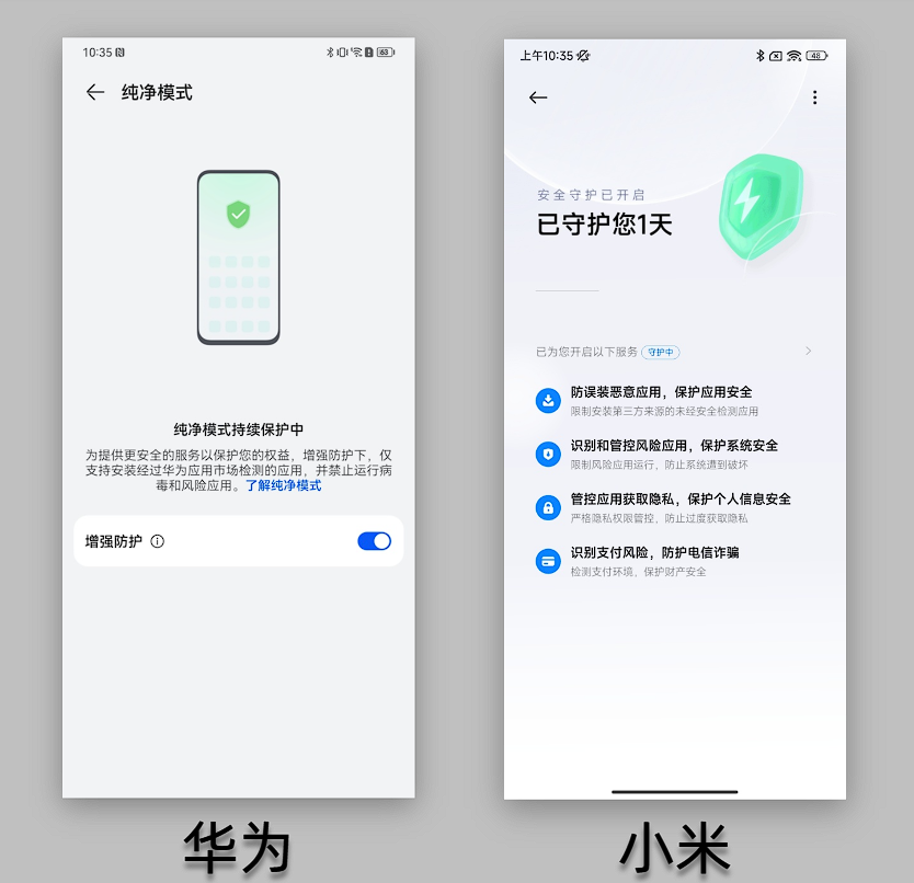 值得一提的是,华为和小米都加入了纯净模式。